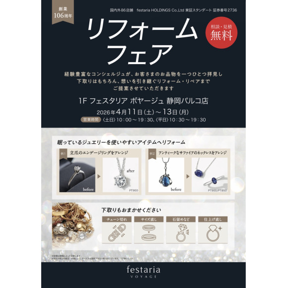 【1F・フェスタリア ボヤージュ】ジュエリーリフォームフェア開催