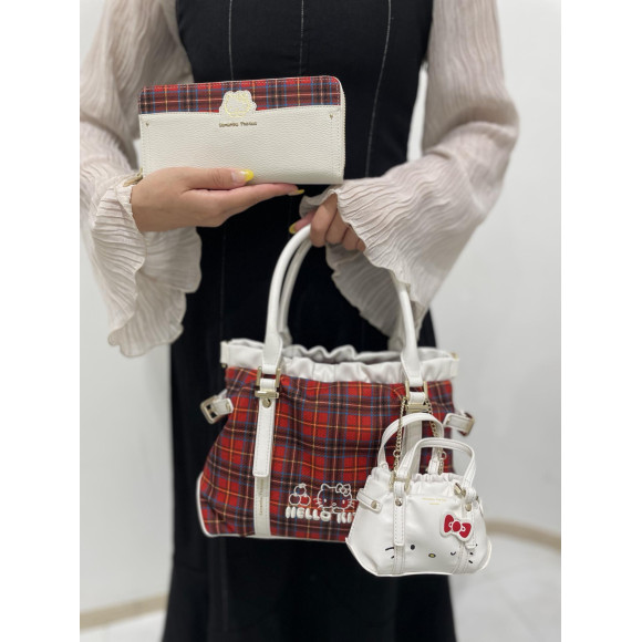 サマンサタバサの人気シリーズに“ハローキティ×タータンチェック”のデザインを施したバッグ、財布、チャームがラインナップ。