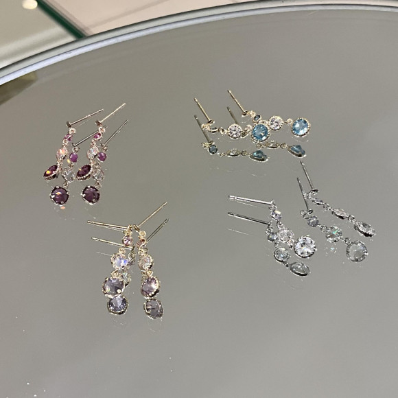カラーストーンの揺れるデザインが可愛いピアスはアップヘアスタイルにぴったりです。