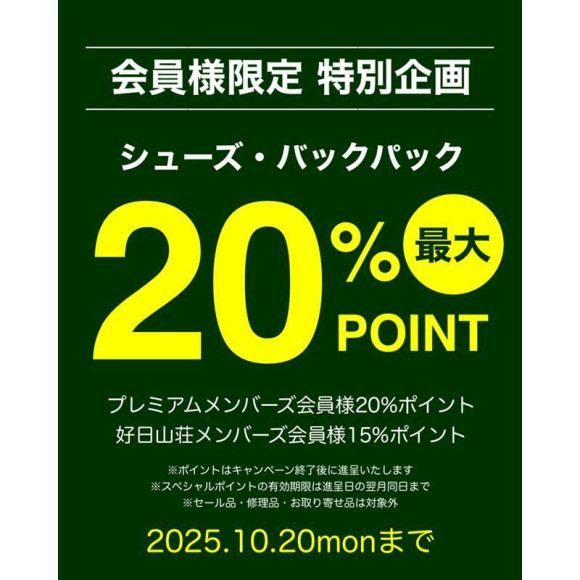 登山靴、バックパックの好日山荘メンバーズポイントの還元が