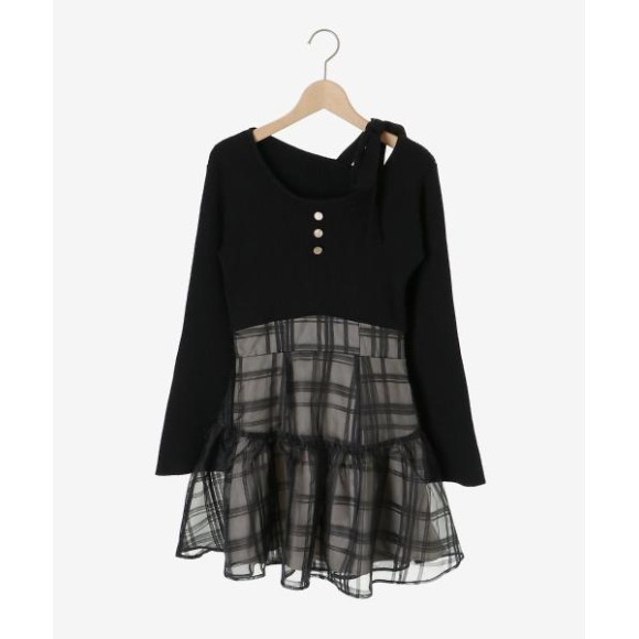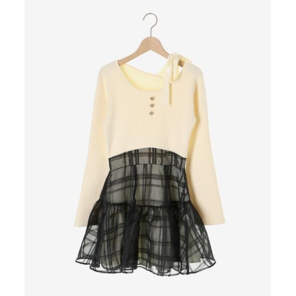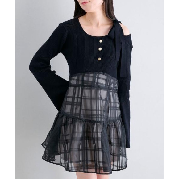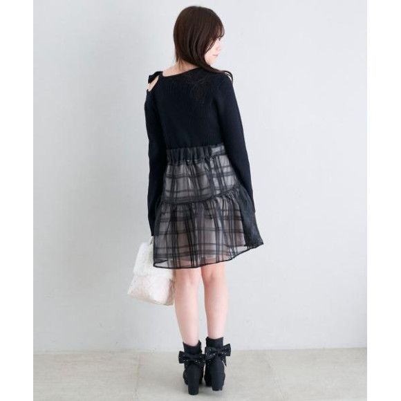 しっかりとした温かみのあるニットと、ボリュームのあるスカートをドッキングしたミニワンピース。