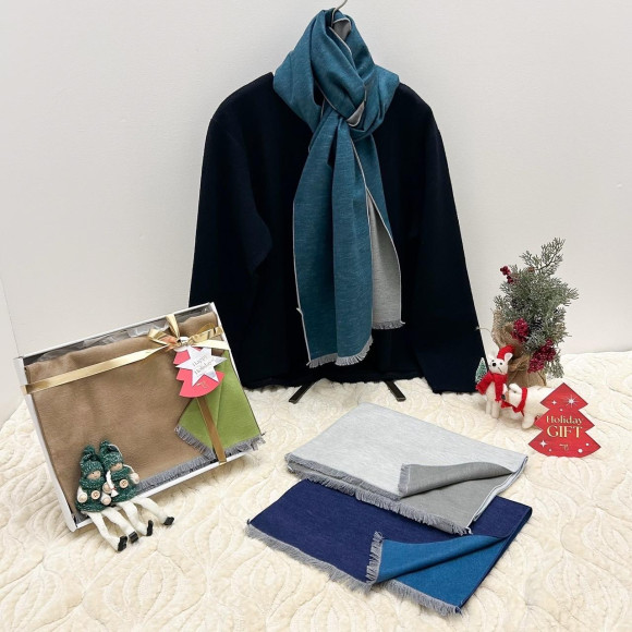 上質なシルク100%のリバーシブルマフラー。