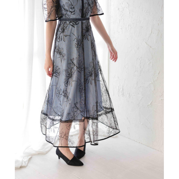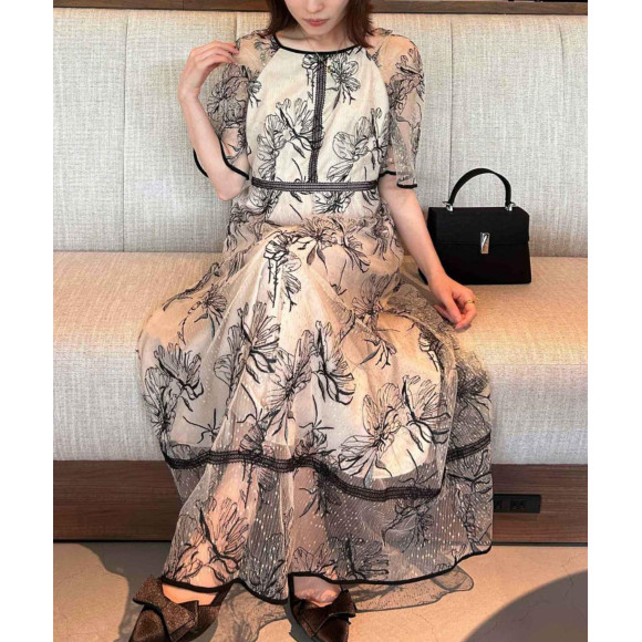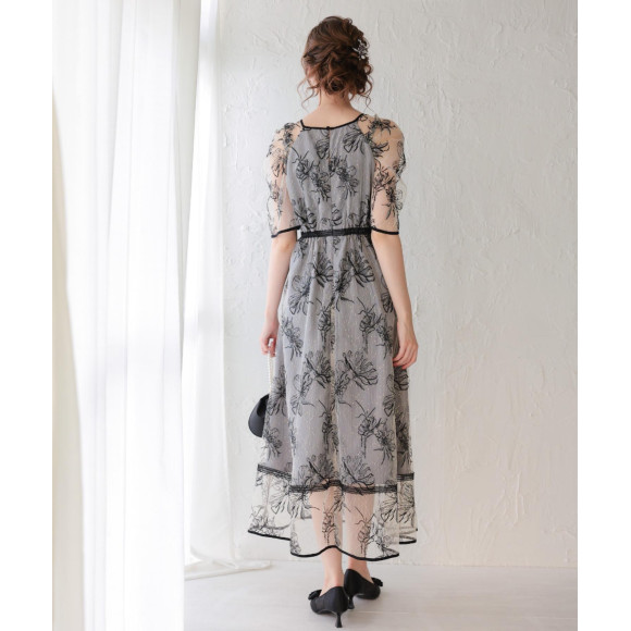 大胆な花柄刺繍が魅力的なドロイングフラワードレス