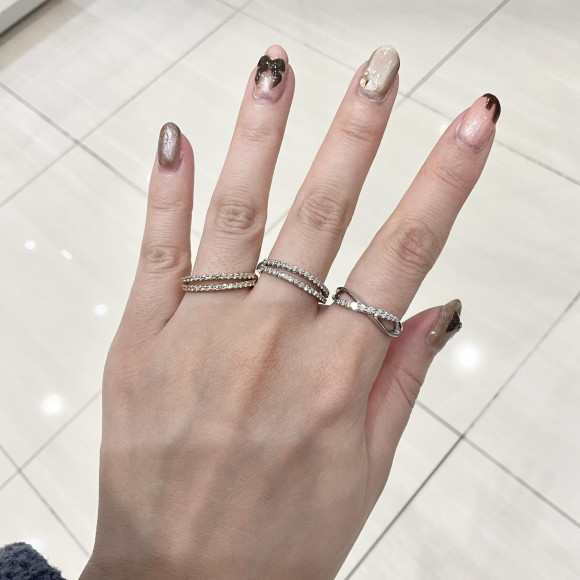 2連のようになっていたり、クロスになっていたり、隙間のあるデザインのリングはお指を長く見せてくれる効果があります⭐︎