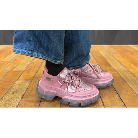 2種類のシューレースにチャームをあしらい、ヴァンプにはスタッズを配置しており、デコラティブでポップな仕上がりがトレンド感を演出してくれます☆