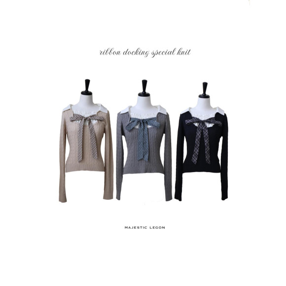 ブラウスをレイヤードしているようなドッキングデザインなので、着膨れせずにスッキリとトレンドの重ね着スタイルが楽しめます♡