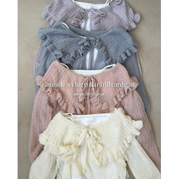 ボリュームたっぷりのビッグカラー&フリルで顔周り華やかに、インナーのキャミ付きなので、セットで楽ちん♩コーデに迷いません!