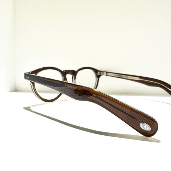 60年代のフレンチヴィンテージの中でも名作として知られるラウンドパントフレームをベースに徐々に厚みを加えてリデザインされたフロントに、40年代以前のノー芯で作られたヴィンテージフレームの独特な雰囲気を持つテンプルデザインが合わさっています。