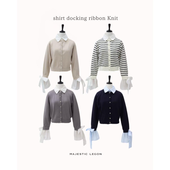 シャツをドッキングしたようなデザインで、きちんと感と可愛らしさを同時に叶えるリボンニット。