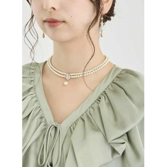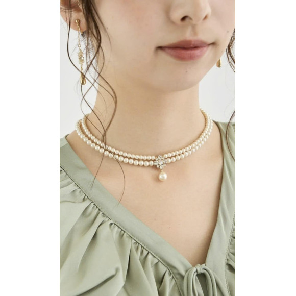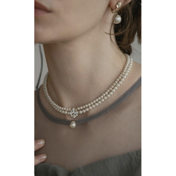 存在感ある上品な2連パールのネックレス。