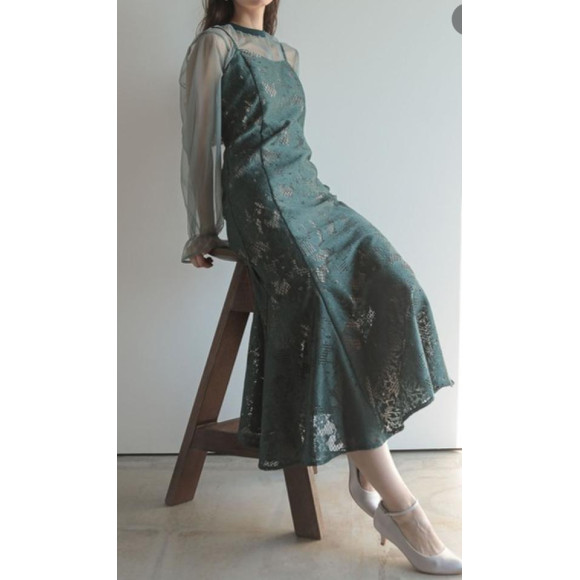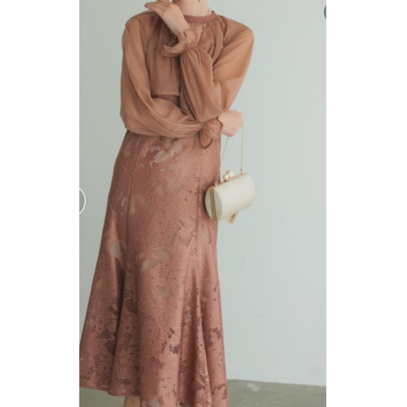 【ジャガードレース生地のマーメイドドレスとシフォンブラウスのセットアイテム】