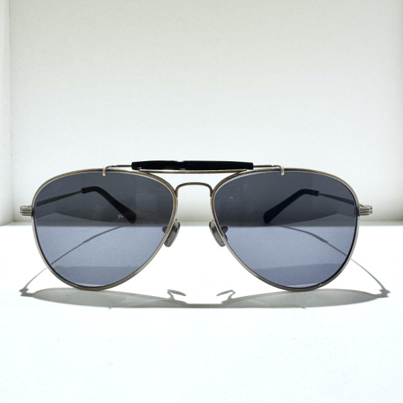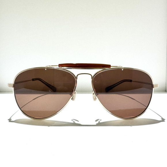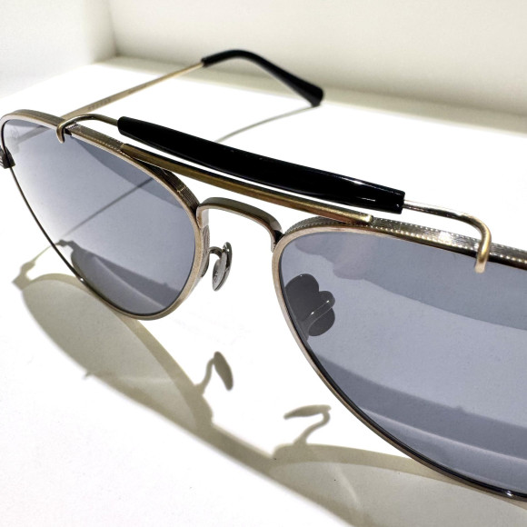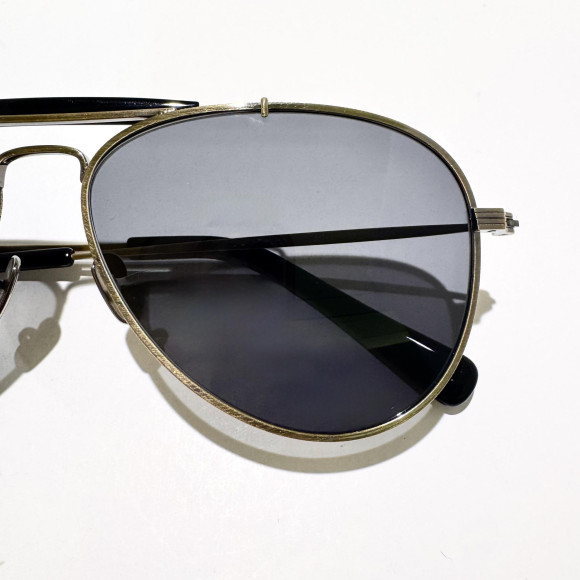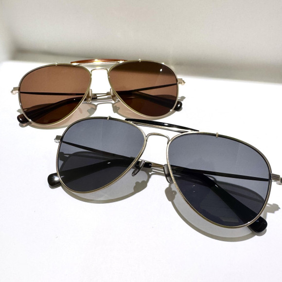 1960年代のアヴィエータースタイルのアメリカ製ヴィンテージフレームを着想源に、ミル模様とライン模様でデザインされたオリジナルリムによって現代的に再構築したモデルになります。