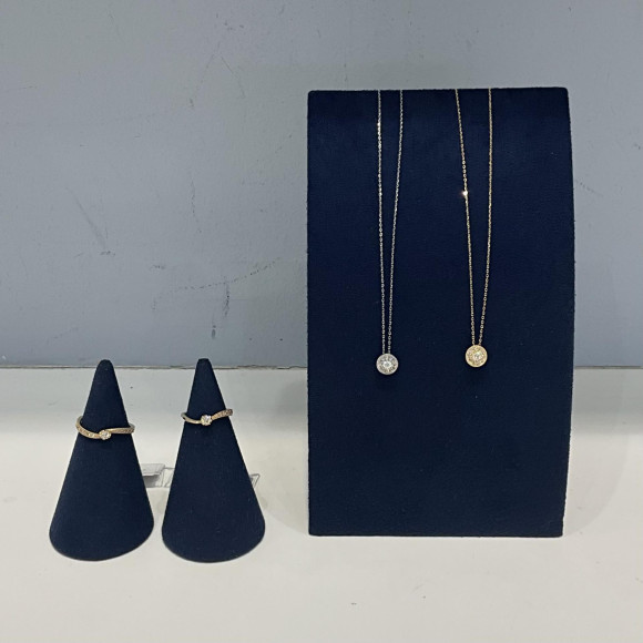 ネックレス、リングのお揃いデザインのジュエリーはコーディネートに統一感が出ます♪