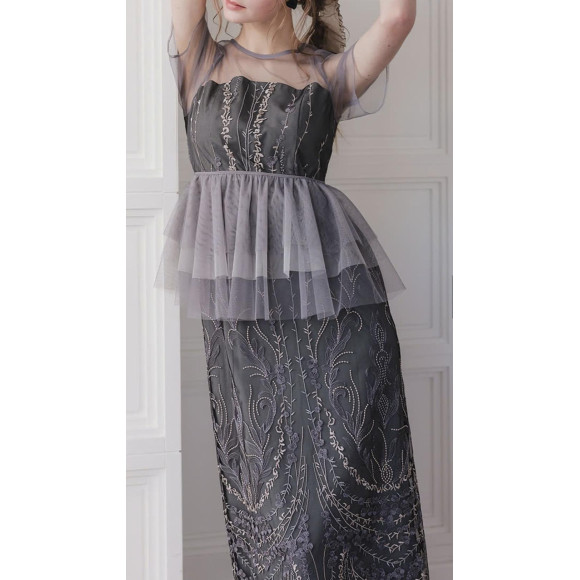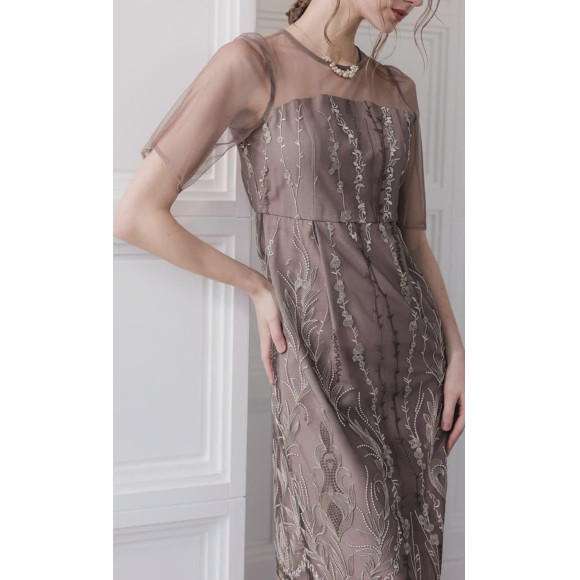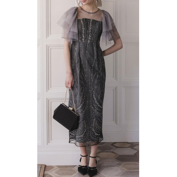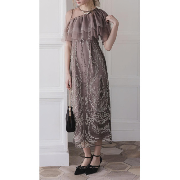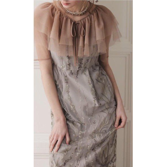 ケープなしのワンピース単体でご着用いただいても、成立する華やかさも嬉しいポイント。