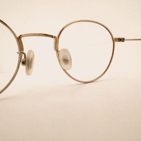 シンプルなデザインのフレームだからこそ、「蝶貝」のノーズパットが際立ちます。